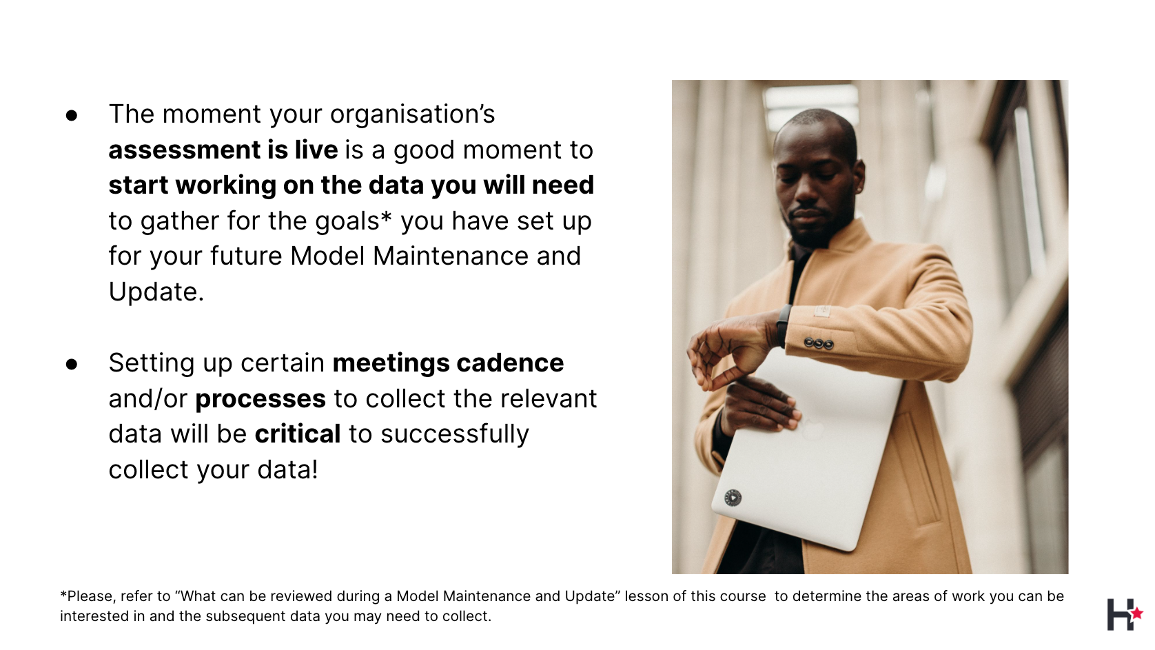 See below an example of the activities to be conducted after an assessment is live in preparation for a future Model Maintenance and Update.