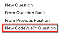 In the drop down menu, click New CodeVue Question.