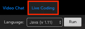 When the Live interview has started, the options Video Chat and Live Coding are listed. Click Live Coding.