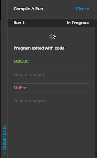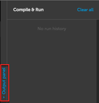 Output panel is only available for supported languages. On the right side of the page, click Output Panel to show or hide the feature.