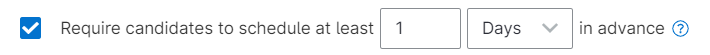 Use Require candidates to schedule at least X Days in advance to ensure candidates don’t book interviews too close to the actual interview time (e.g. prevent candidates from scheduling the day of the interview).