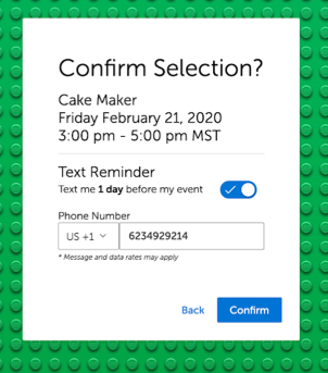 After they choose a time, candidates are asked to confirm their selection, and given the option to provide their phone number to receive a text reminder one day before the scheduled interview.