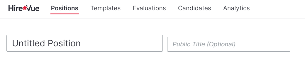 In HireVue, click New Position on your Home page. Alternatively, click Positions at the top of the page, then New Position.