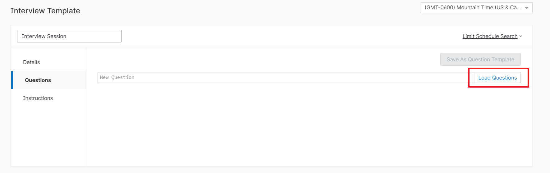 In Questions, type in a question or click Load Questions to load questions from the question bank, a question template, or from a previous position.