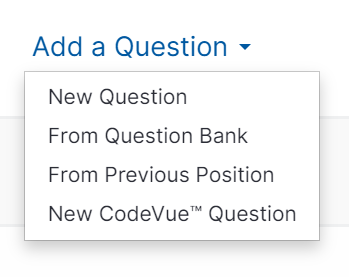 - New Question: Create a video, essay, multiple choice, multiple selection, ranking, or screen sharing question.