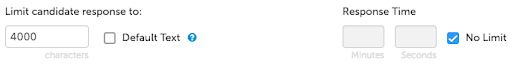 Essay will require an essay response from the candidate. This option includes a character limit, default text option, and response time.