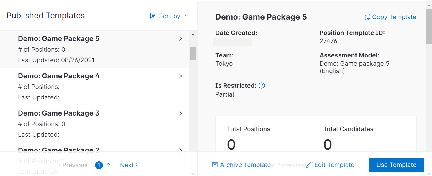 Use the following steps to create a position using position templates. Position templates can only be used for OnDemand interviews.