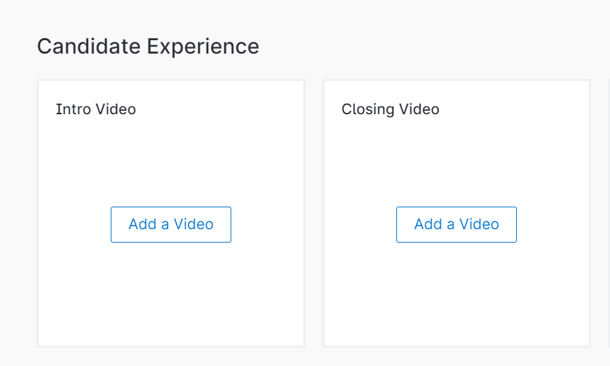 If a position has already been created, open the position and click on the Interview Setup tab. The intro and closing videos are under the interview setup's Candidate Experience section.