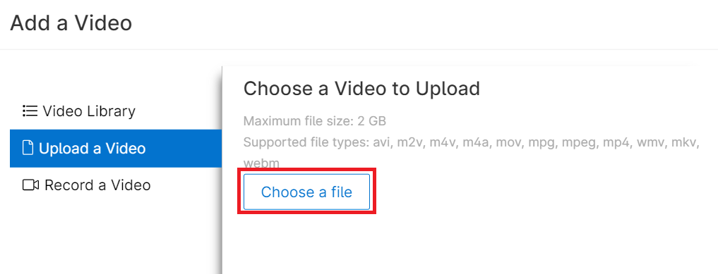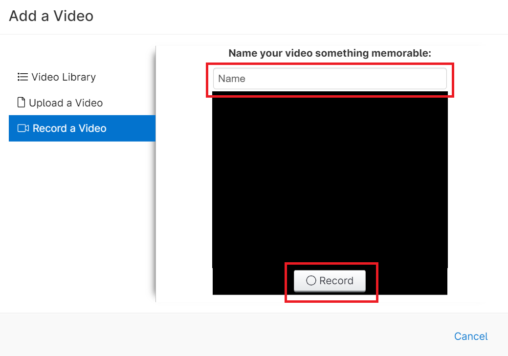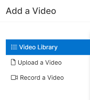 In the new window, you can select a video from the Video Library, Upload a Video, or Record a Video.