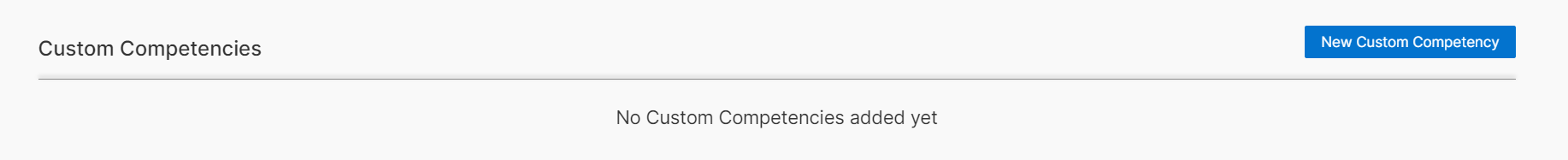 2. Custom Competencies: This section will list all of your custom competencies. If you haven’t created any custom competencies yet, this section will be empty. There is a button labeled New Custom Competency on the right that will allow you to create your custom competencies.