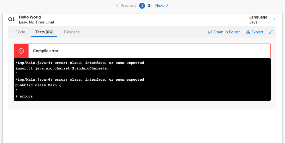 If there is a Compile Error, the details are outlined in the Tests tab.