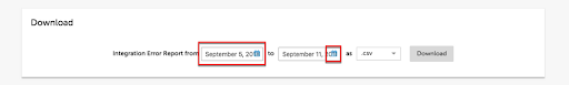 In the download section, select the timeframe for the report by clicking into the field with the date or clicking on the calendar icon.