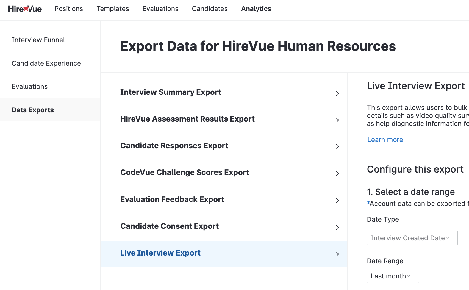 Please note: The Live Interview Export is only accessible to users with reporting permissions such as account and team administrator and team reporting manager.