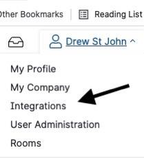 Customers can access Single Sign On Self Service through the HireVue application by selecting Integrations from the menu under the admin name in the upper right corner of the page:
