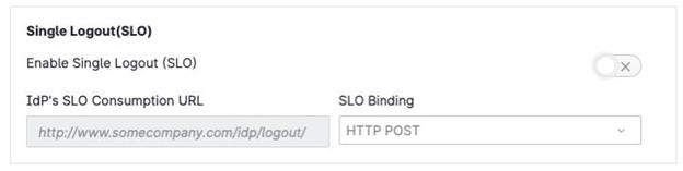 The final section to review is Single Logout (SLO). To use Single Logout, turn the Enable Single Logout (SLO) switch to ON, enter the SLO Consumption URL and choose the SLO Binding type. Not all SSO configurations use SLO, so only enable if yours does!