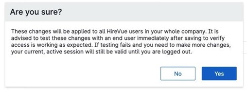 When these two criteria are met, we can allow access to self service for managing your SSO configuration. If you need to enable SSO for the first time on your HireVue account, contact support for assistance.