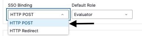 Moving on. There are settings for the SSO Binding and Default Role in this section as well. The SSO binding defaults to HTTP POST, but can be changed to HTTP ReDirect. HTTP POST is the preferred method.