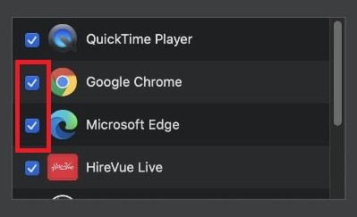 4. Select the checkbox next to the apps that you want to allow screen recording. You might be prompted to quit and reopen an app before you will be able to continue.