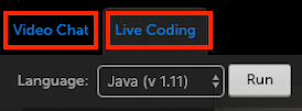 At the top left of the interview screen, the options Video Chat and Live Coding are listed. If your account uses Live Coding you will see this option.