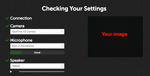 Next, your connection, camera, microphone, and speaker will be tested. To continue to your Live interview, all of your equipment must pass.