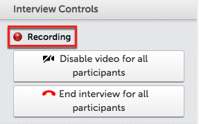 Interview Controls: This section will show when the interview is recording or not recording. The options to disable video or end the interview are also included.