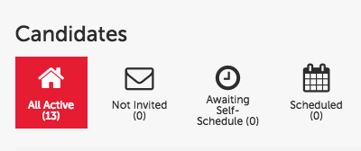 - Awaiting Self-Schedule - Live/Onsite/Phone/Event interviews that are waiting for the candidate to self-schedule.