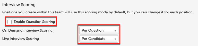 For On Demand and Live interviews you can choose whether the ratings are scored per question or per candidate: