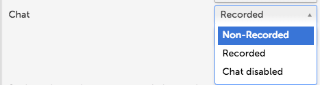 Chat refers to the chat option in the Live interview. You can set chat as Non-Recorded, Recorded, or Chat disabled.