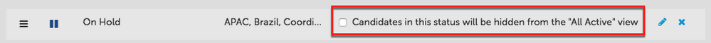 In the Custom Status you will see the status icon, title, the teams that can use this status, and an option Candidate in this status will be hidden from the “All Active” view. If you check this option candidates in that status will be hidden and removed from the total count of active candidates.