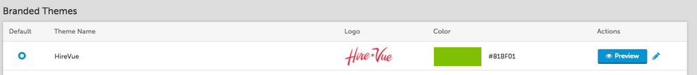 The branded theme selected will reflect the user and candidate experience including branding for email templates, landing pages, interview background and exit page. A branded theme is applied when creating the position.