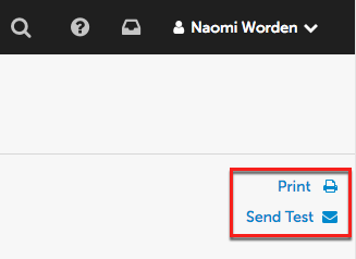 - On the right side you can print the template or send yourself a test email to view it.