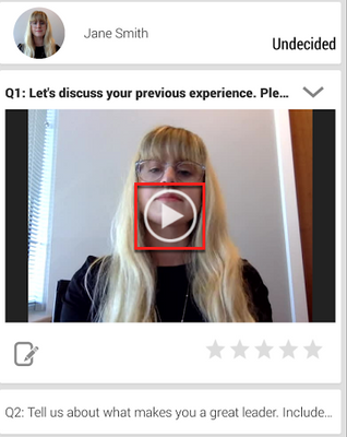 Click on the interview questions to view the candidate’s responses. For video questions, click the play icon to watch the recording.