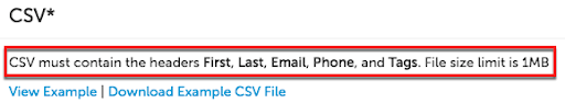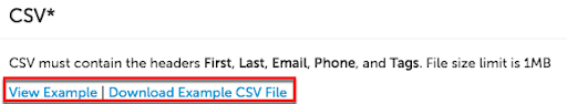 You can also click View Example or Download Example CSV file to see how your file should be formatted to successfully upload candidates.