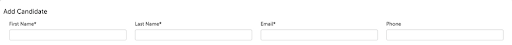 First name, last name, and email are required fields to input the candidate’s name and email address. Phone is an optional field for the candidate’s phone number.