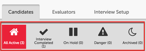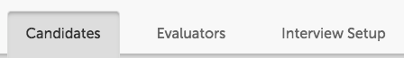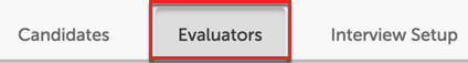 When a position is saved, there are three sections of information: Candidates, Evaluators, and Interview Setup.