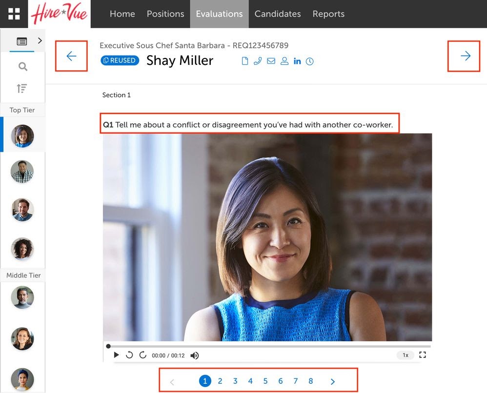 To open the candidate list, move the mouse over the left portion of the screen. The candidate list will default to collapsed. To pin the list open, click the arrow at the top.