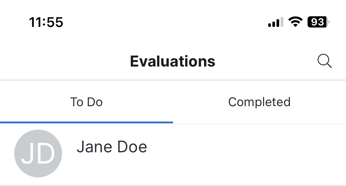 Evaluations lists evaluations assigned to you that need to be completed and ones that are completed. You can toggle between these evaluations in the To Do and Completed tabs.