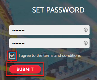 After clicking Activate Account, type in your new password in both fields, agree to the terms and conditions, and click Submit.