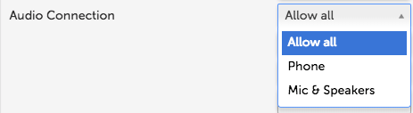 Audio Connection refers to the audio option in the Live interview. You can choose to set the Live interview audio through a phone as a dial-in interview, through a computer’s microphone & speakers, or Allow All. Selecting Allow All will allow the user creating the position to choose either phone or mic and speakers.