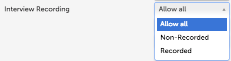 Interview Recording can be set as Non-Recorded, Recorded, or Allow All. Selecting Allow All will allow the user creating the position to choose either Non-Recorded or Recorded.
