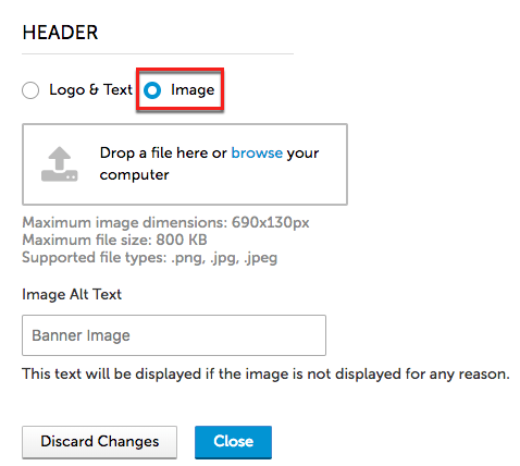 At the top of each email template is the Header. Choose this section to edit the Logo & Text in the header.