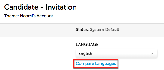 Use Compare Languages to compare email templates in different languages side by side. For example, if you have edited an email template in English and in French you can compare them side-by-side to ensure the information matches.