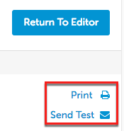 On the right side choose Print to print a hard copy of the email template or Send Test to send yourself a test email.