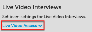 Set which teams have access to specific types of Live interviews. Click Live Video Interviews enable or disable Live interviews for a specific team.