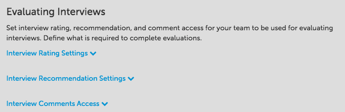 Click on each option to set the interview rating, recommendation and comment access for evaluations by team.