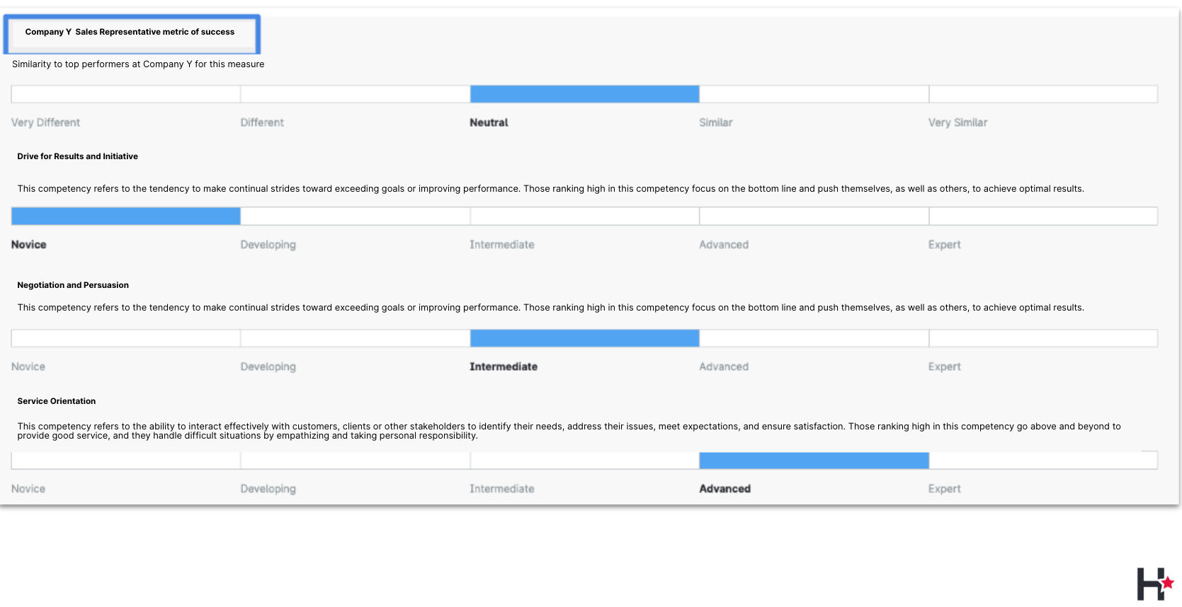 - the organization's metric of success identified for a role/job family (e.g. performance)