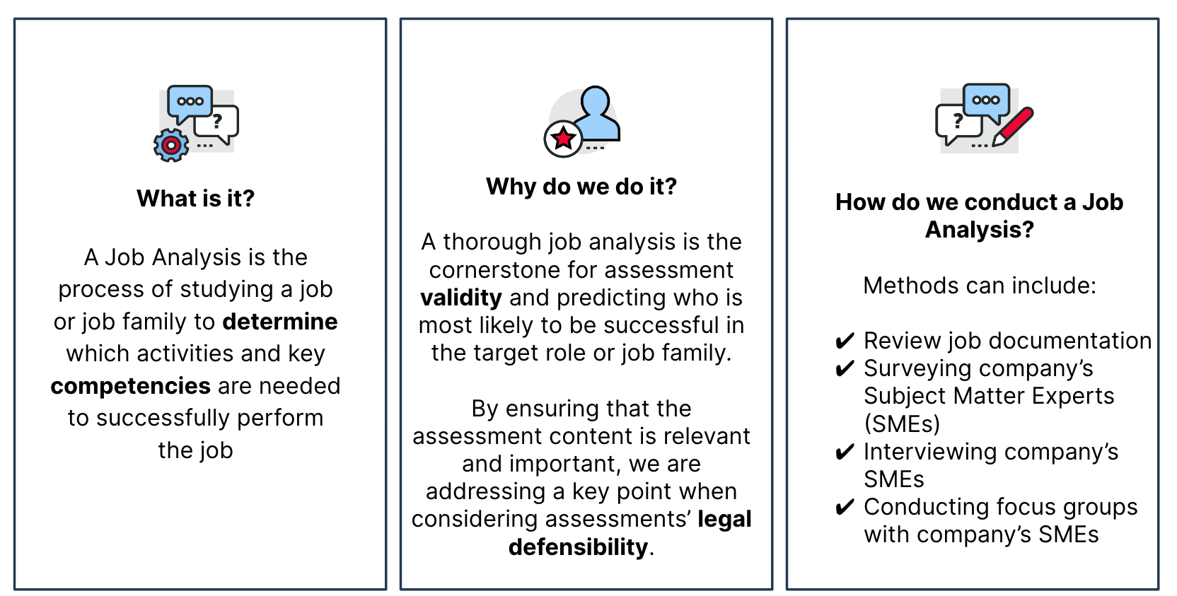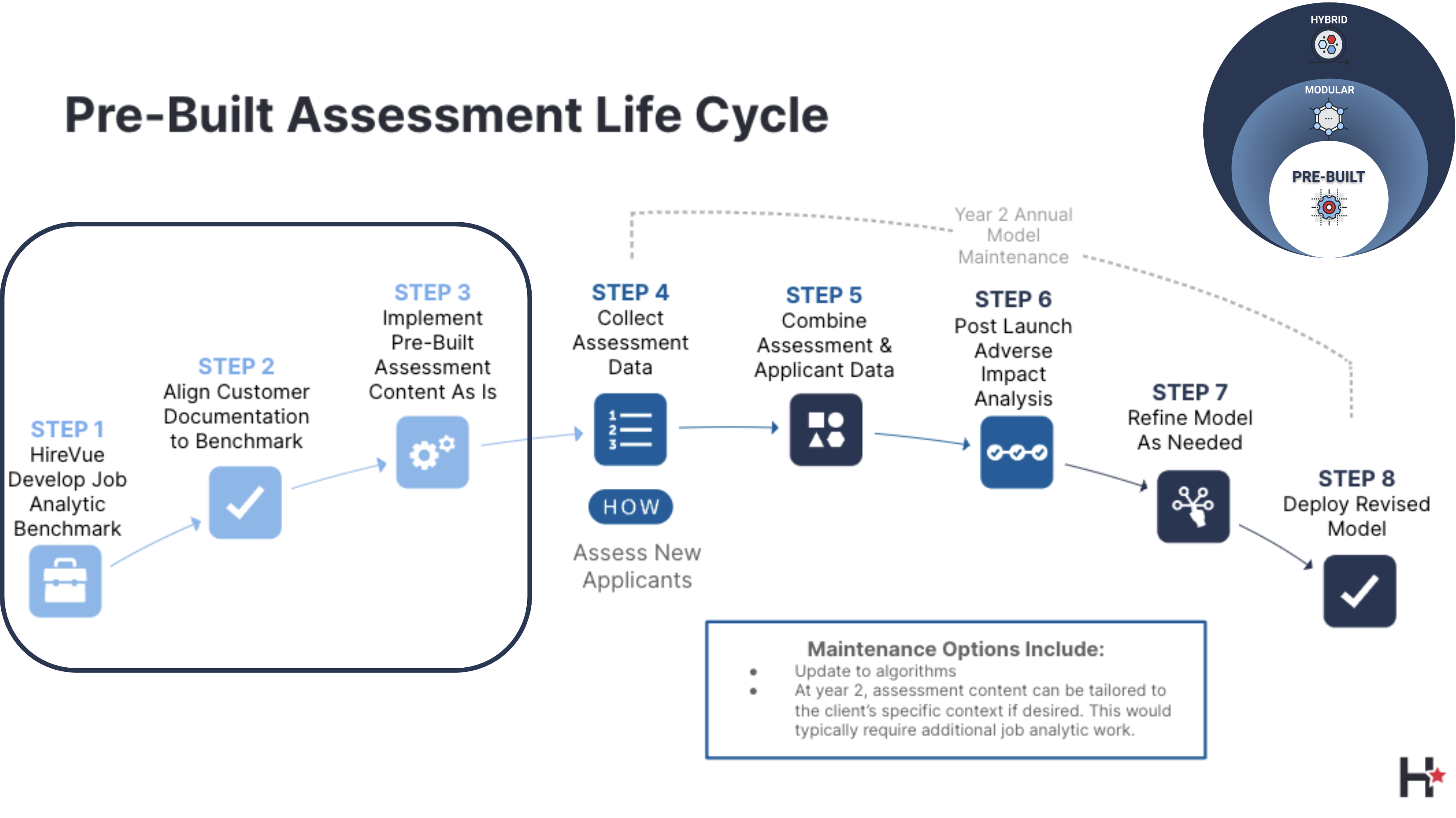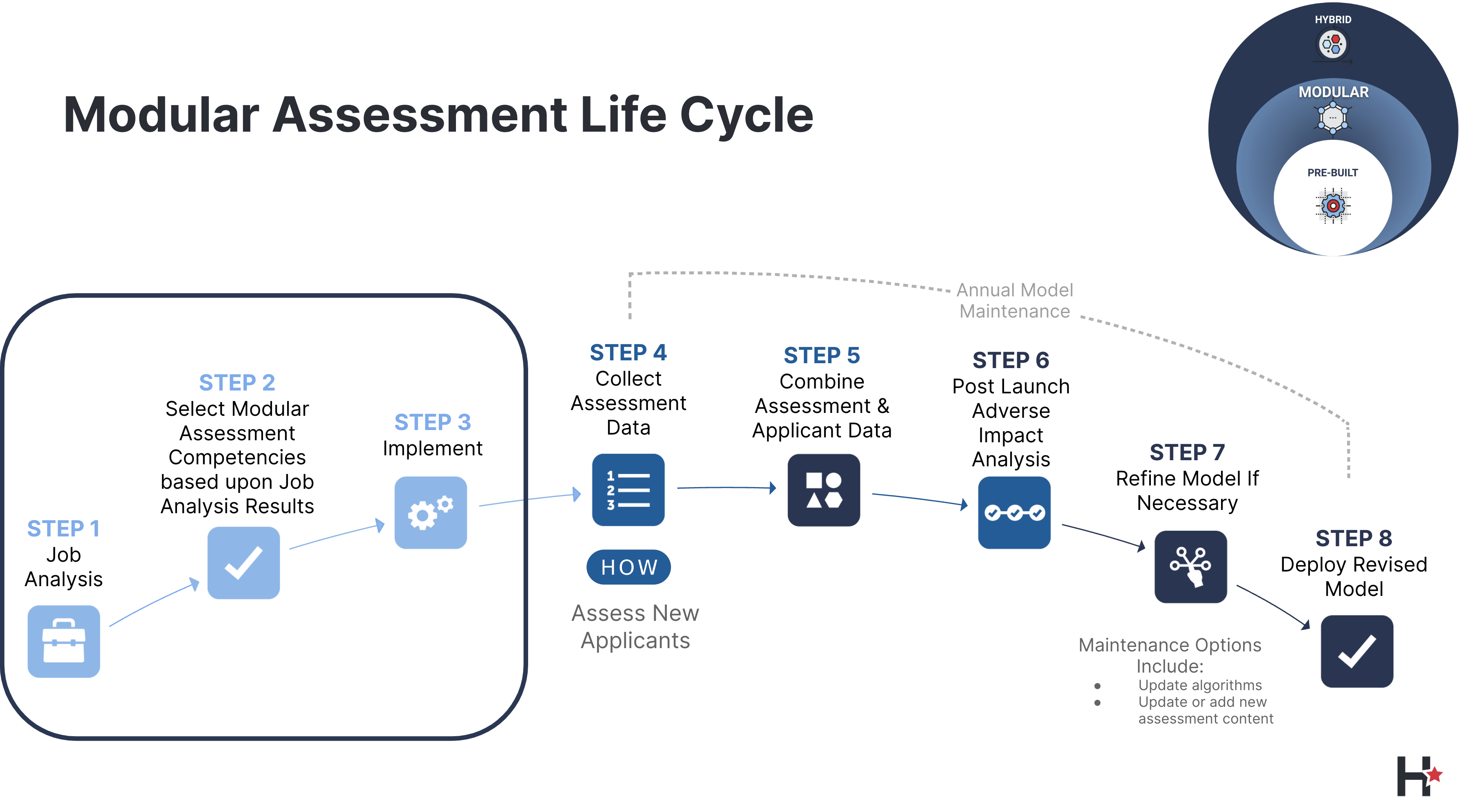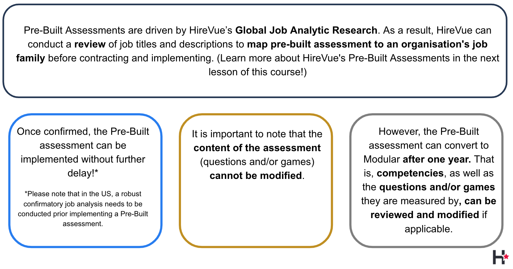 - In the case of Modular Assessments, HireVue team will conduct a Job Analysis in order to identify and select the right assessment content (i.e. questions and/or games) to be implemented in an organization.