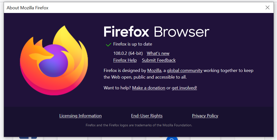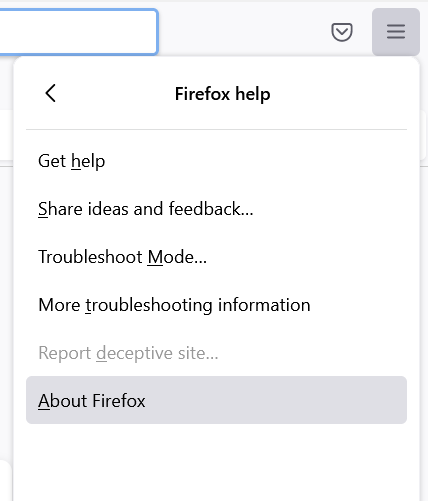 - Select About Firefox.