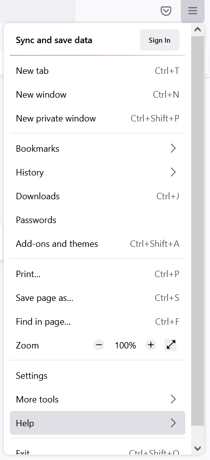 - In the menu select Help.