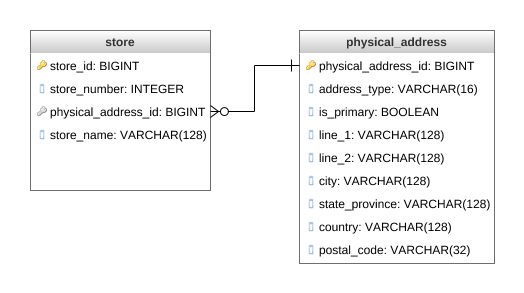 DescriptionWrite an SQL statement to query the store_number and all columns of the physical_address table for each primary store address. The schema of the database is shown in the attachments tab. Sort the query result by country alphabetically and then by store_number in descending order. | |